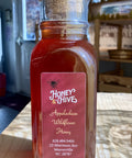 What could be a better holiday gift than local honey in a traditional, rustic Muth bottle? These square glass bottles embossed with a skep beehive look very handsome in the kitchen and on the table. Filled with a lovely raw mountain wildflower honey from Franklin, NC, these jars of honey will be sure to delight you, your guests, and anyone you gift it to this holiday season. Only available from now until New Year's!